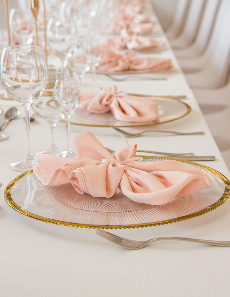 Serwetka pudrowy róż to subtelny i elegancki element dekoracji stołu, który wprowadza romantyczny klimat i miękkość aranżacji. Jej delikatny pastelowy odcień pięknie współgra ze złotymi dodatkami, szkłem i jasną zastawą, sprawdzając się idealnie na weselach, przyjęciach okolicznościowych, galach oraz eventach firmowych. Serwetka dostępna w ofercie wynajmu dekoracji ARS Deco – doskonały wybór do aranżacji w stylu romantycznym, klasycznym i glamour.